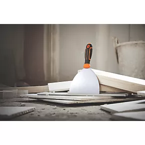 Jointing knife with an ergonomically-designed soft-grip handle for a comfortable and controlled grip. Easy to use with a flexible full-length tang which improves balance and durability. Stainless steel constructed blade for rust resistance and longevity. Ideal for drywalling applications, scraping and smoothing jointing compound.